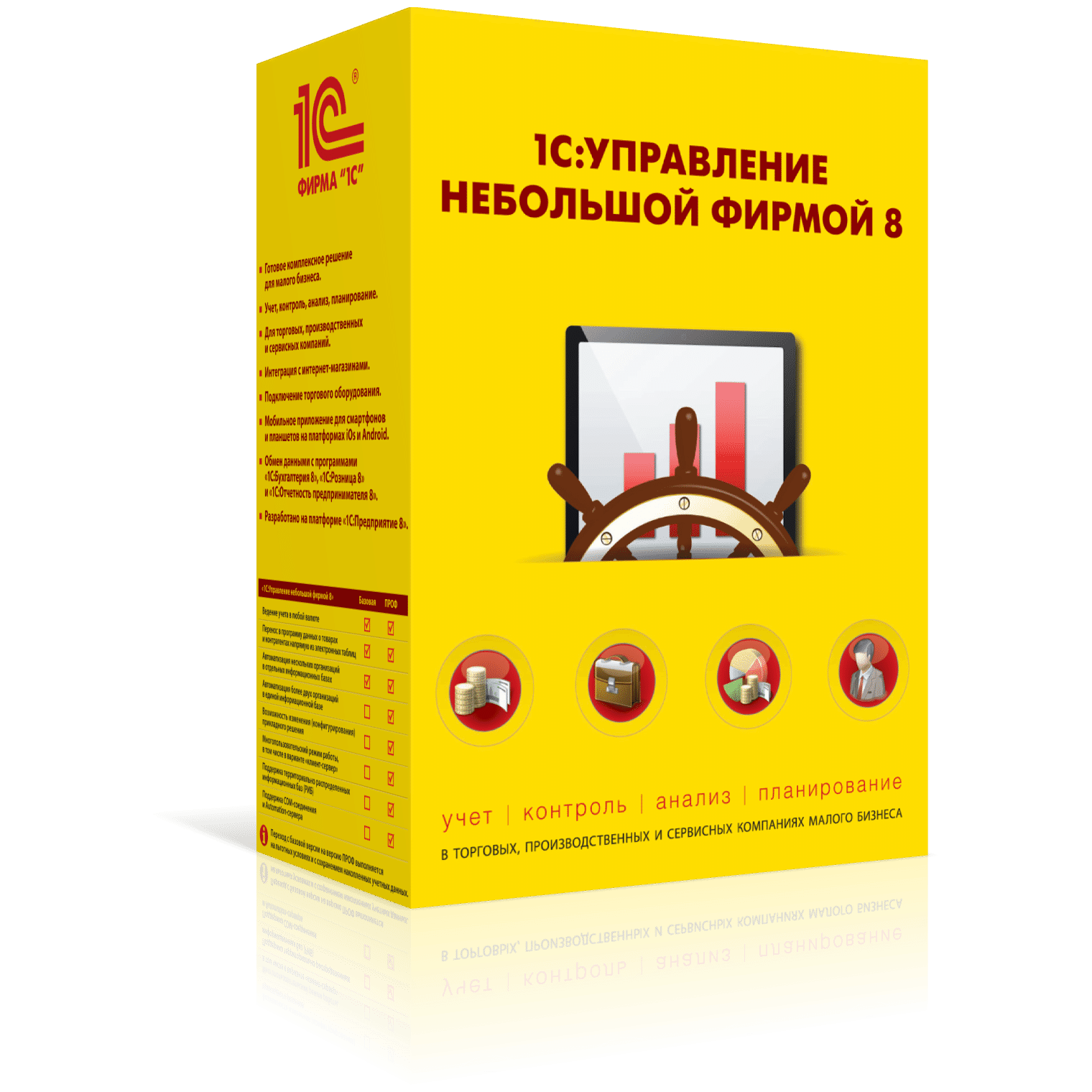 «1С:Управление нашей фирмой» обладает широкими функциональными возможностями, позволяя в единой информационной системе вести: